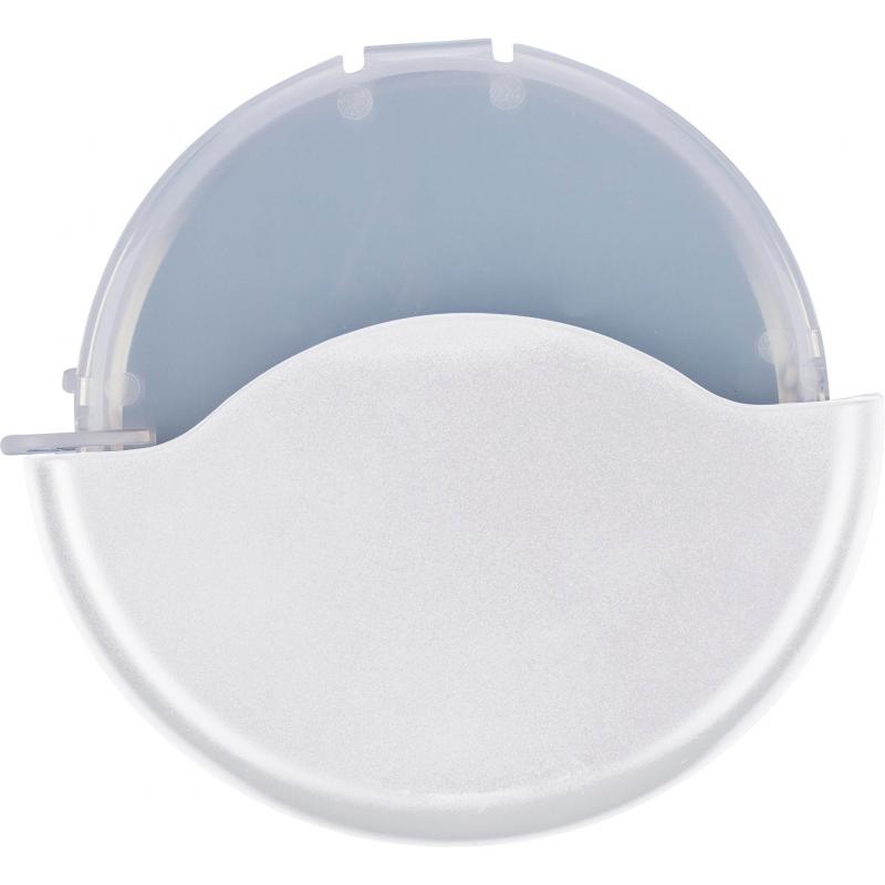 Pizzaschneider besteht aus ABS und PP, seine Klinge ist aus Edelstahl 430 gefertigt. Er verfügt über eine abnehmbare Kassette, die sich zum einfachen Reinigen und für den Zugang zur Klinge aufklappen lässt. Er ist in einem recycelten Polybeutel verpackt.