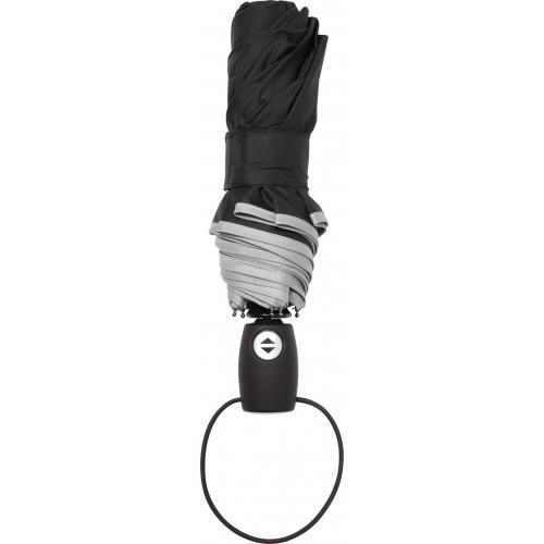 Automatik-Taschenschirm aus Pongee-Polyester (190T), mit Griff, Gestell und Schaft aus Kunststoff, Tips aus Metall, Handschlaufe und Hülle.