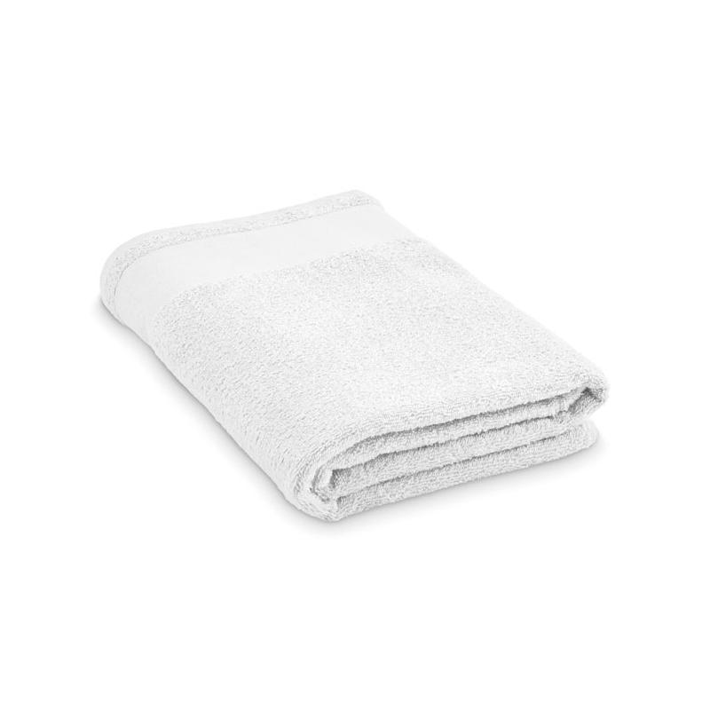 Badetuch aus 100 % baumwolle 380 g m² mit baumwollschlaufe zum aufhängen. Weich und saugfähig. Größe: cm x 150 cm.