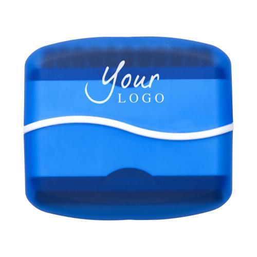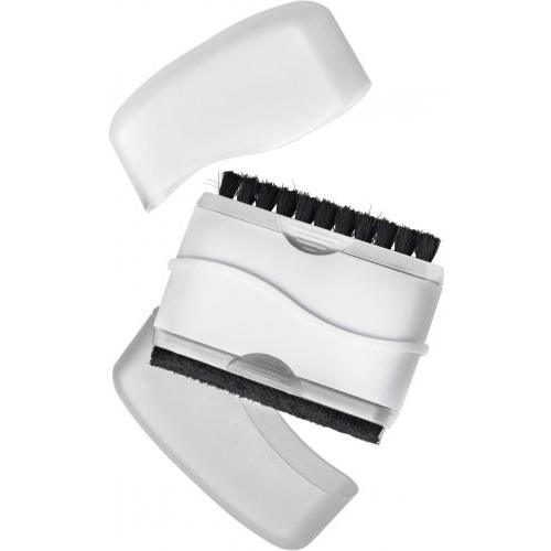 Bildschirm-und Tastaturreiniger aus Kunststoff mit schwarzer Bürste, Deckel sind transparent gefrostet.