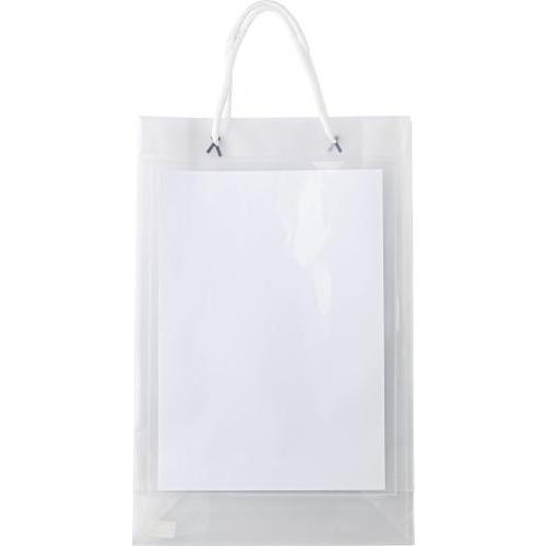 Tragetasche aus PP, im DIN A4-Format, mit Tragekordeln und Frontfach.