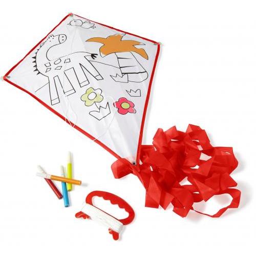 Drachen aus Polyester, inkl. 4 Filzstiften (Rot, Orange, Gelb, Blau) zum kreativen Gestalten, mit Kunststoffgriff.