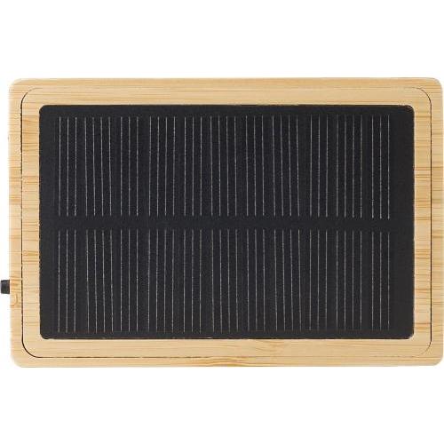 Kabelloser Bambus Lautsprecher mit Solarladung. Inklusive 3W USB-C-Ladekabel. Akkulaufzeit bis zu 4 Stunden (500 mAh).