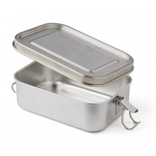 Lunchbox aus Edelstahl (s/s304) (750 ml) mit Schnallenverschluss. Einzeln verpackt in einer braunen Kartonbox.
