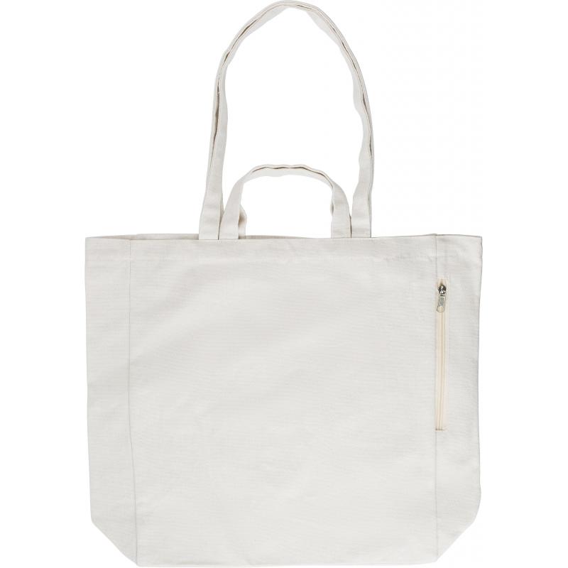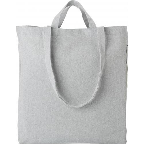 Einkaufstasche aus recycelter Baumwolle mit kurzen und langen Griffen. Tasche mit Reißverschluss an der Seite.