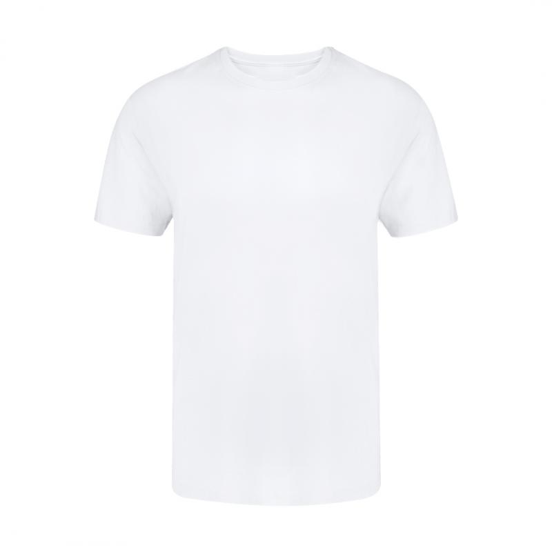 Erwachsenen-T-Shirt aus glattem Jersey, gefertigt aus weicher 100% Baumwolle, 160g/m². Tubuläres design ohne seitennähte und mit rundem Halsausschnitt. Erhältlich in weiß und in den größen S, M, L, XL, XXL, 3XL.