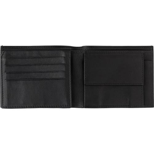 RFID-Geldbörse aus Leder (Ziegenleder) mit Münzfach, das mit einem Druckknopfverschluss verschlossen wird, und verschiedenen anderen Fächern für Bargeld oder Karten.