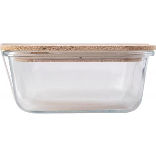 Lunchbox aus Glas mit Bambusdeckel und Silikonband. Fassungsvermögen: ca. 900 ml.