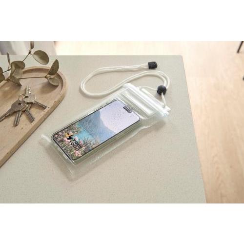 Handyschutzhülle, wasserdicht, doppelt verschweißt, mit verstellbarer Kordel und Sicherheitsverschluss. Das Smartphone ist durch die transparente Hülle bedienbar.