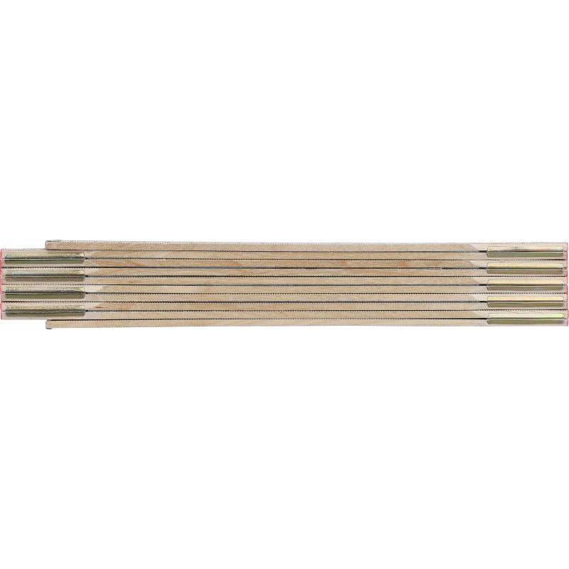 Klappbares Lineal aus Birkenholz verfügt über eine Zentimeterangabe und ist 2 Meter lang. Es besteht aus zehn Segmenten mit Stahlscharnieren, die für Langlebigkeit und Stabilität sorgen. Eine Eckverriegelung gewährleistet die sichere Verwendung. Die Lieferung erfolgt in einer Papierhülle.