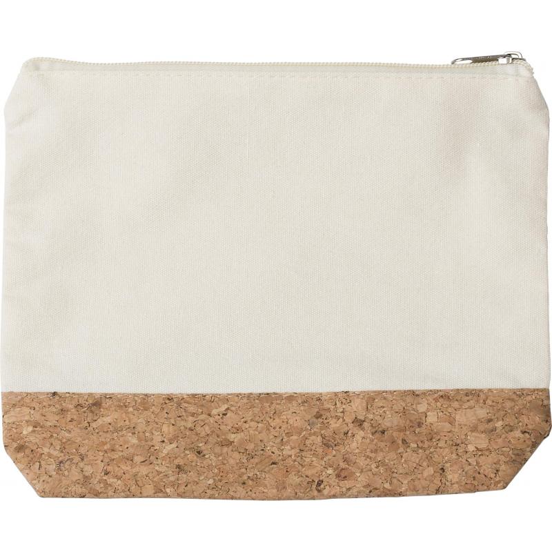 Kosmetiktasche aus Baumwolle (220 gr/m2) mit Korkdetails und Reißverschluss. Ein großes Fach.