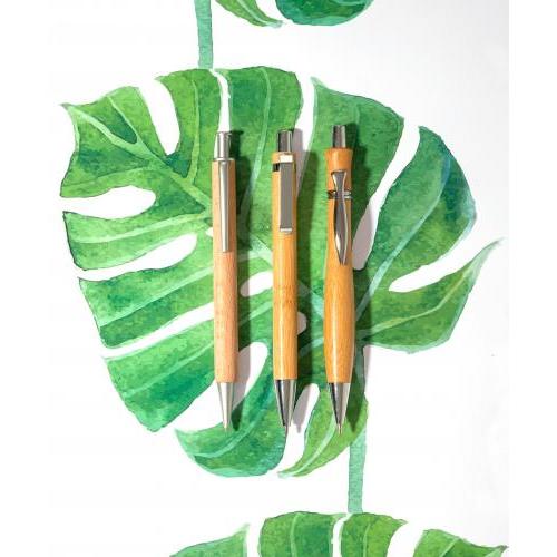 Kugelschreiber aus Bambus, mit Metall-Clip, Drücker und Spitze, schwarze Mine.