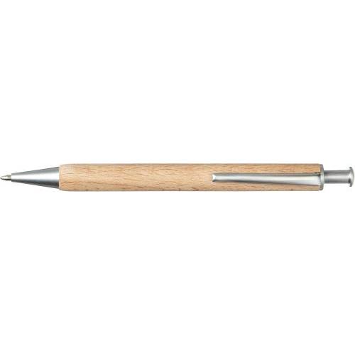 Kugelschreiber aus Buchenholz, mit Metall-Clip, -Spitze und blauer Mine. Ausgestattet mit deutscher Dokumententinte.