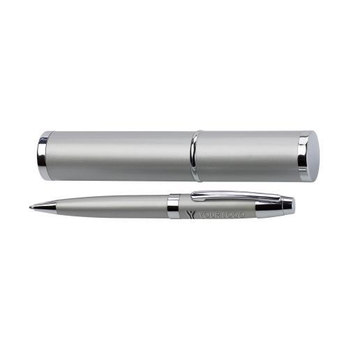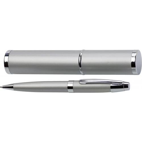 Kugelschreiber aus Metall, mit Drehfunktion, Metall-Clip, schwarzer Mine und XXL-Etui.