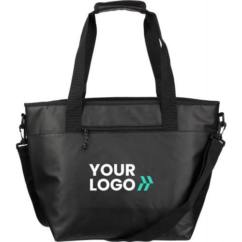Kühltasche aus Polyester (600D) + TPE-Beschichtung mit PEVA/15C-Innenfutter. Die Tasche ist mit 6 mm PE-Schaum ausgekleidet und innen wasserdicht. Zwei Tragegriffe mit Klettverschluss und ein verstellbarer Schulterriemen. Fronttasche mit Reißverschluss.