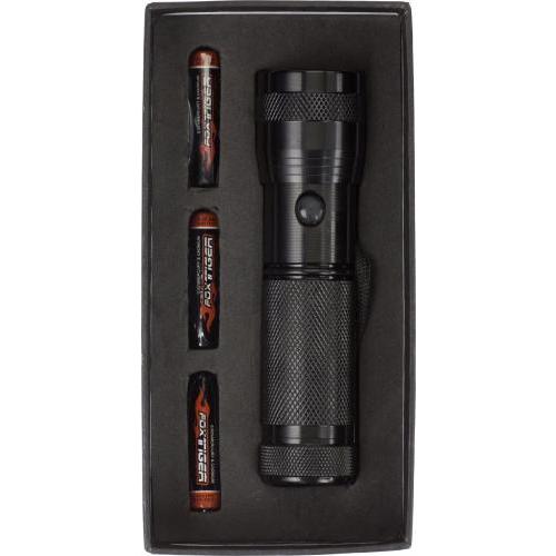LED-Lampe aus Metall, 14 LEDs und Handschlaufe, verpackt in einer Geschenkbox.