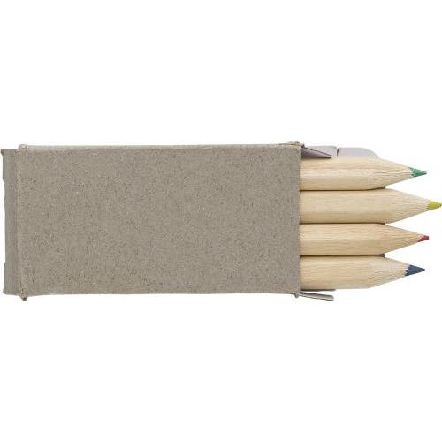 Mini-Buntsift Set aus Holz mit 4 Bleistiften (gelb, rot, grün, blau) in einer wiederverwendbaren Box.