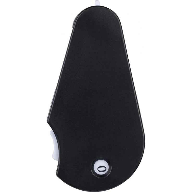 Multifunktionales Golf-Tool aus recyceltem ABS mit integriertem Marker, Pitchgabel, Reinigungsbürste und Punktezähler. Mit Recycling-ABS-Logo auf der Rückseite. Verpackt in einem recycelten Polybeutel.