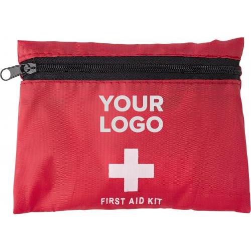 Notfall Set in RV-Tasche aus Polyester (170T) mit Gürtelschlaufe. Das Set besteht aus Schere, Pinzette, Kreppband, Pflastern und Mullbinde. Nicht verkäuflich in der Schweiz. Dieses Produkt darf nur innerhalb der Europäischen Union verkauft und geliefert werden.