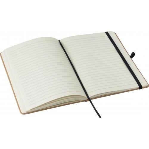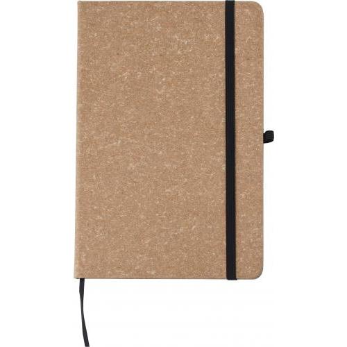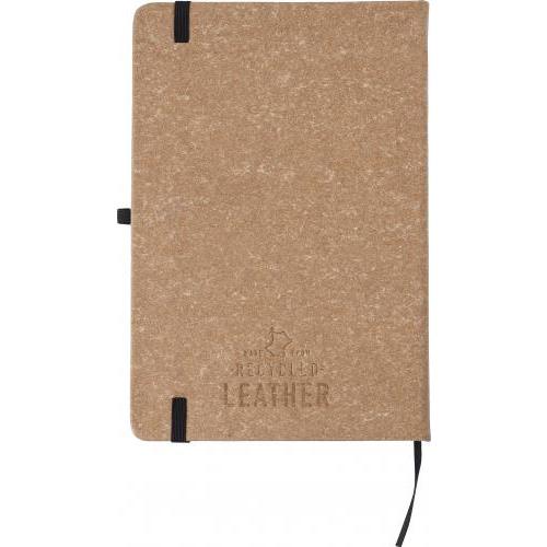 Notizbuch aus recyceltem Leder (A5) mit 200 linierten Seiten (70 g). Mit Gummiband zum Verschließen, einem Lesezeichen aus Band und einer Stiftschlaufe. Rückseite mit heißgeprägtem Logo aus recyceltem Leder.