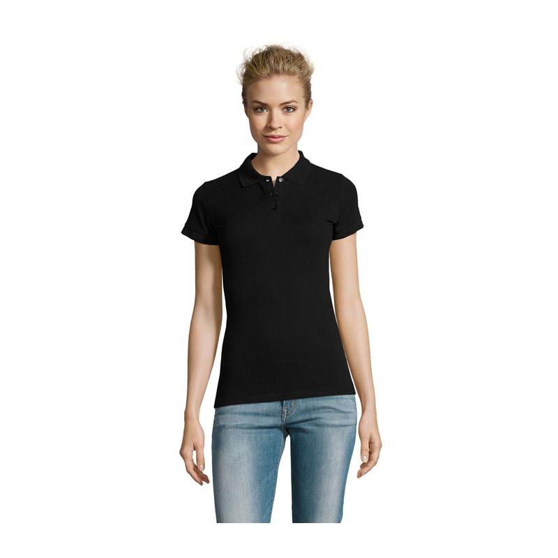 Sol's perfect damen polo-piqué mit rippkragen und -bündchen, nackenband, kurzarm, knopfleiste 2 farblich abgestimmten perlmuttknöpfen, seitennähte, ersatzknopf am seitenlabel innen. Material: 180g m², 100% gekämmte, ringgesponnene baumwolle.
