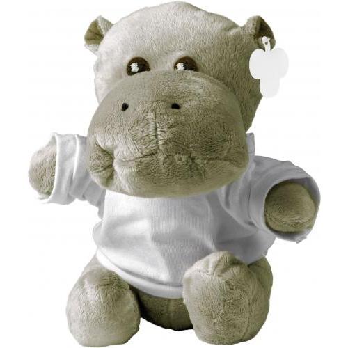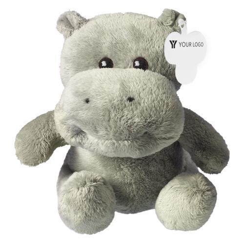 Plüsch-Nilpferd ohne T-Shirt (siehe Artikel 5013), mit Papierlabel für die Werbeanbringung.