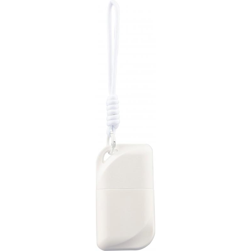 PP-Kassette mit 50 ml Sonnenschutzlotion (LSF 50) sowie einem farblich passenden Polyester-Handgelenkband mit Metallhaken. Auf der Rückseite befindet sich ein Aufkleberheftchen.