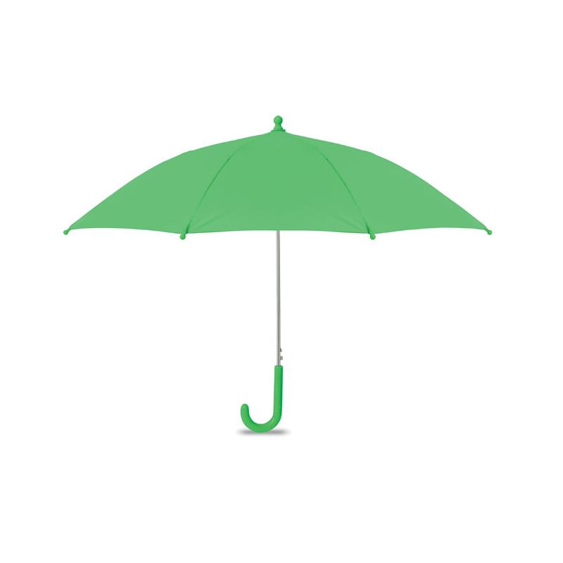 18'' regenschirm für kinder aus 190t polyester. Stock und stangen metall. Griff, spitzen krone pp. Automatische öffnung, manuelle schließung.