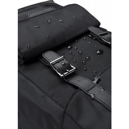 Rucksack mit Lasche aus rPET (290T) Polyester Twill. PU-Riemen. Zwei Flaschentaschen an den Seiten. Tasche mit Magnetverschluss auf der Vorderseite. Kordelzugverschluss für Innentasche. Laptopfach (15 Zoll) und normales Fach. Trolleyband auf der Rückseite. Wasserabweisende Oberfläche.