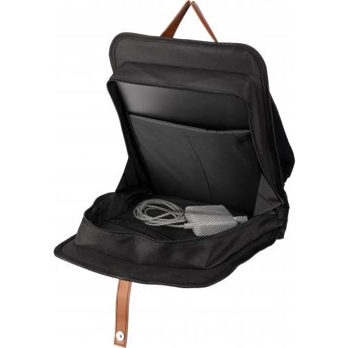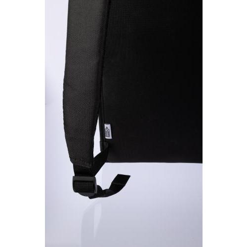 rPET (600D) Polyester Rucksack aus wasserdichtem Oxford Gewebe. Der Rucksack hat eine Laptoptasche (15 Zoll) und eine Netztasche im Inneren mit verstellbaren Trägern. Inklusive PU-Schlaufe und PU-Magnetverschluss.