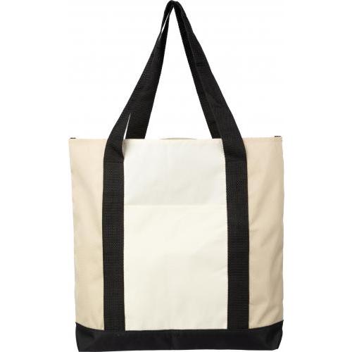 rPET (600D) Tragetasche mit einer tasche auf der Oberseite und einer offenen Tasche auf der Vorderseite. Mit langen Griffen.