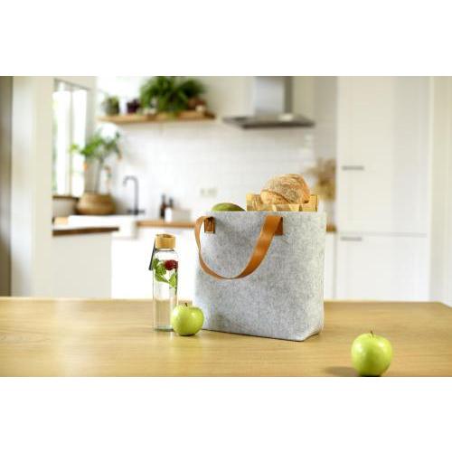 Einkaufstasche aus rPET-Filz mit PU-Griff. Ein großes Fach.