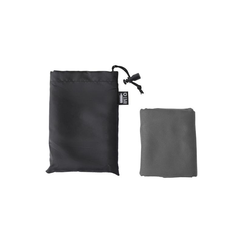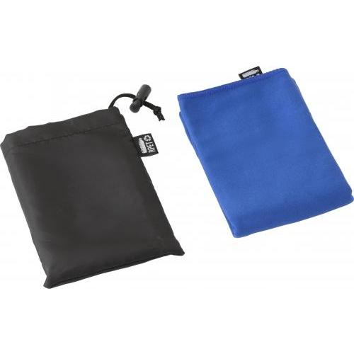 RPET-Handtuch (79 x 30 cm) in RPET-Beutel mit Kordelzugverschluss.