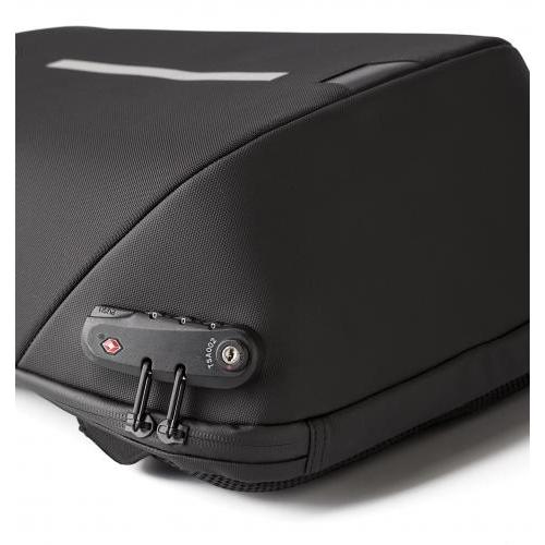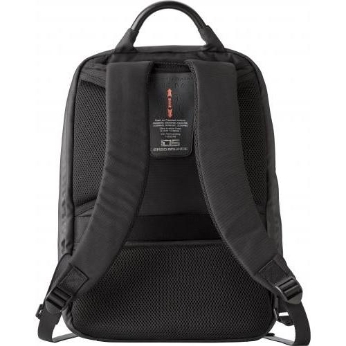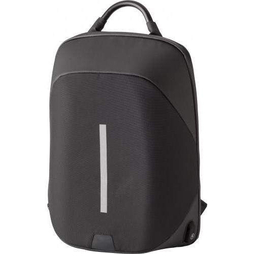 Laptoprucksack aus Nylon (1200D) mit Innenfächern und einem gepolsterten Laptopfach (passend bis 15''). Gepolsterter Rücken und verstellbare Schultergurte. Digitales Zahlenschloss, USB-Anschluss und Kabel, Taschengurt und Metallgriff.
