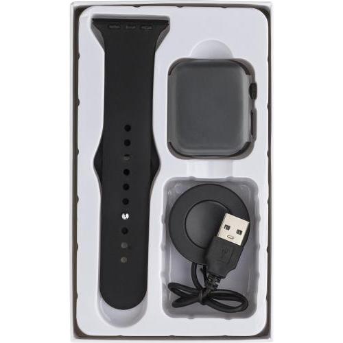 Intelligente Uhr aus PC und PVC mit verstellbarem Armband und drahtloser Technologie. Mit Touchscreen und Scrolltaste an der Seite. Funktionen: Telefonanruf, Herzfrequenz, Schlafüberwachung, Sauerstoffmessung, Nachrichtenerinnerung, Trinkwassererinnerung, Trainingserinnerung. Inklusive USB-Kabel. Einzeln verpackt in einer Box.