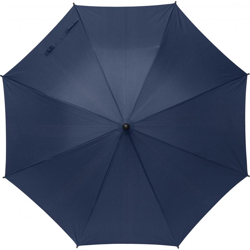 Regenschirm mit einer Bespannung aus rPET (170T), einen Handgriff aus Kunststoff und einen Rahmen aus Fiberglas.