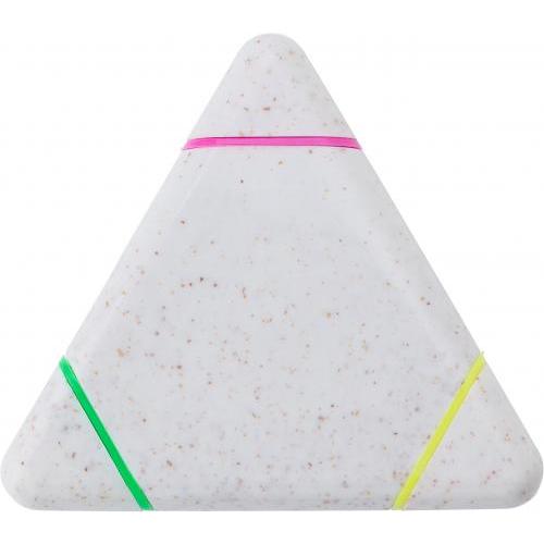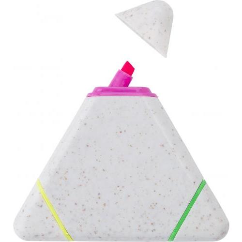 Textmarker aus Weizenstroh mit drei Farben: rosa, grün und gelb.
