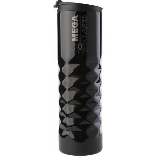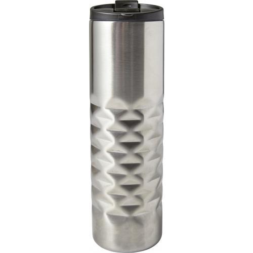 Thermobecher aus Edelstahl, Inhalt ca. 460 ml, doppelwandig, mit geschraubtem Kunststoff-Deckel (mit Klappverschluss) und Edelstahl-Innenwand.