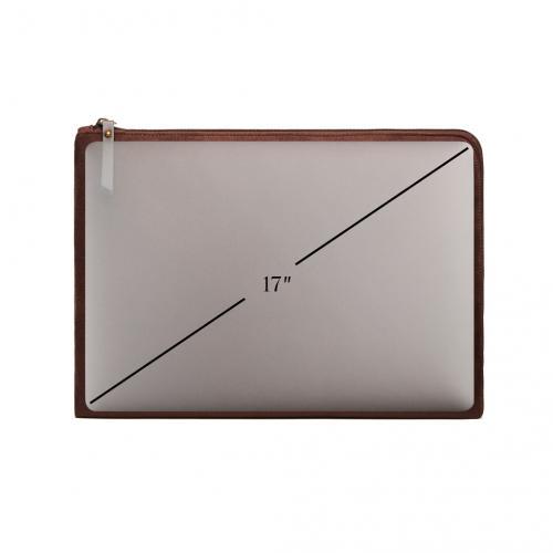 Eine elegante gepolsterte Hülle für einen 16-Zoll-Laptop. Diese vielseitige Hülle ist ideal, um Ihren Computer sicher und stilvoll zu transportieren, egal welche Gelegenheit. Das hochwertige Design verfügt über eine weiche Passform, um den Komfort zu erhöhen, flexible veganes Leder und subtile metallische Details mit Messingfinish. Das schlanke und elegante Design passt leicht in Ihre Tasche oder Ihren Koffer. Geschäftsreisen waren noch nie so elegant.