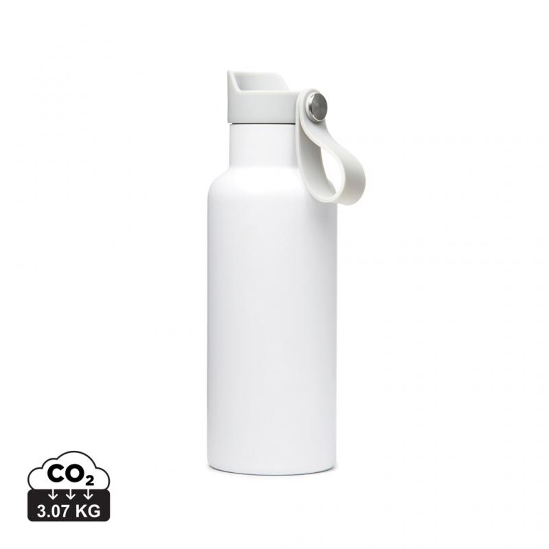 Praktische und stilvolle doppelwandige Wasserflasche mit Vakuumverschluss, um Getränke bis zu 6 Stunden kalt oder warm zu halten. Genießen Sie Ihr Lieblingserfrischungsgetränk oder nehmen Sie überall eine leckere Tasse heißen Kaffee oder Tee mit. Öffnungsfunktion mit Knopf. 500ml.